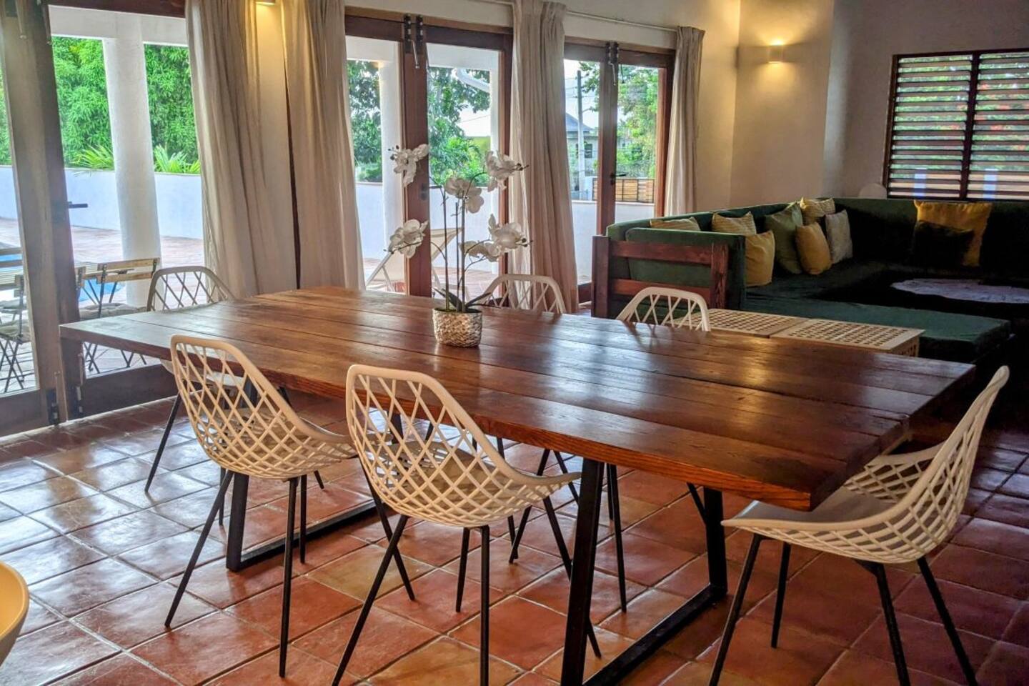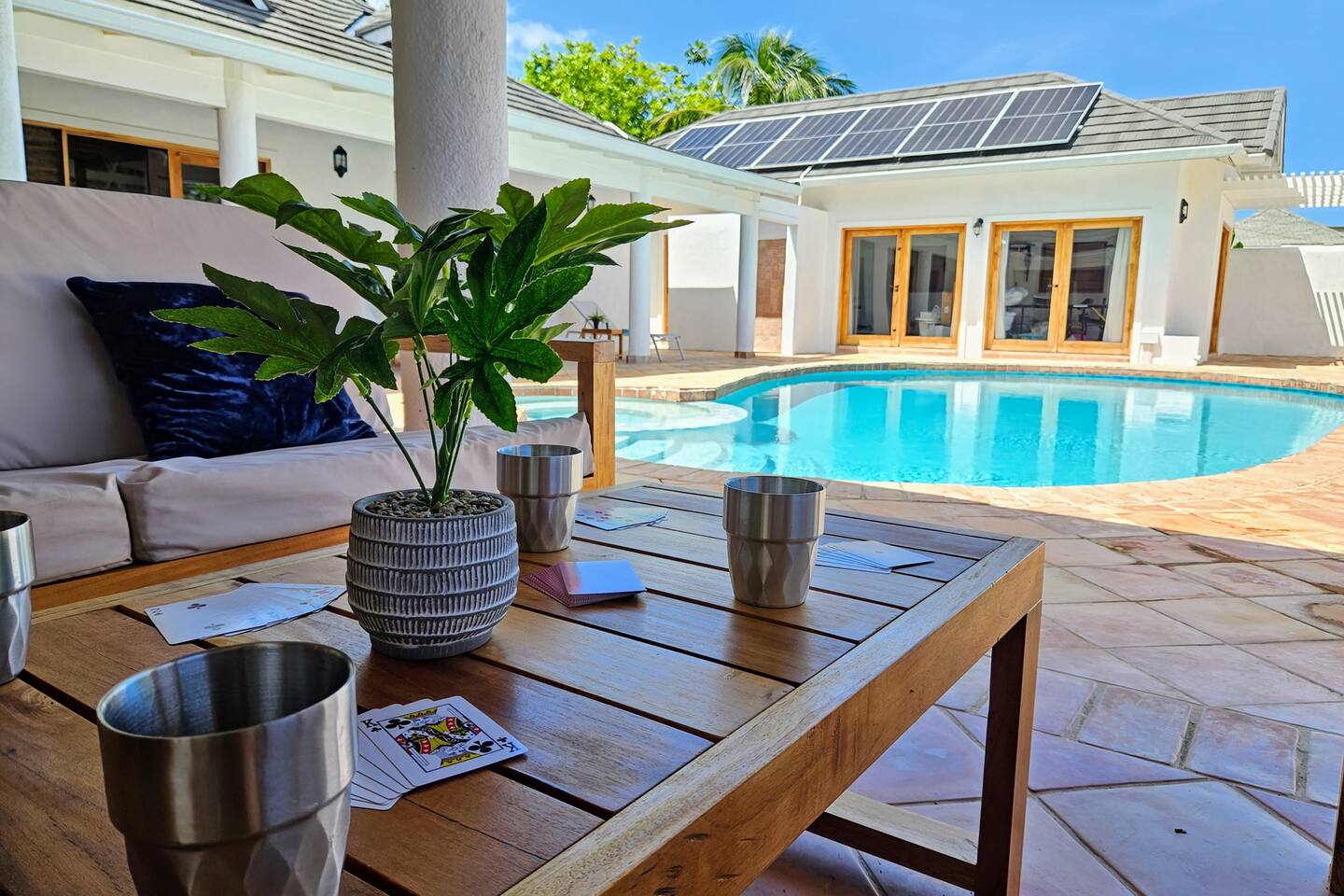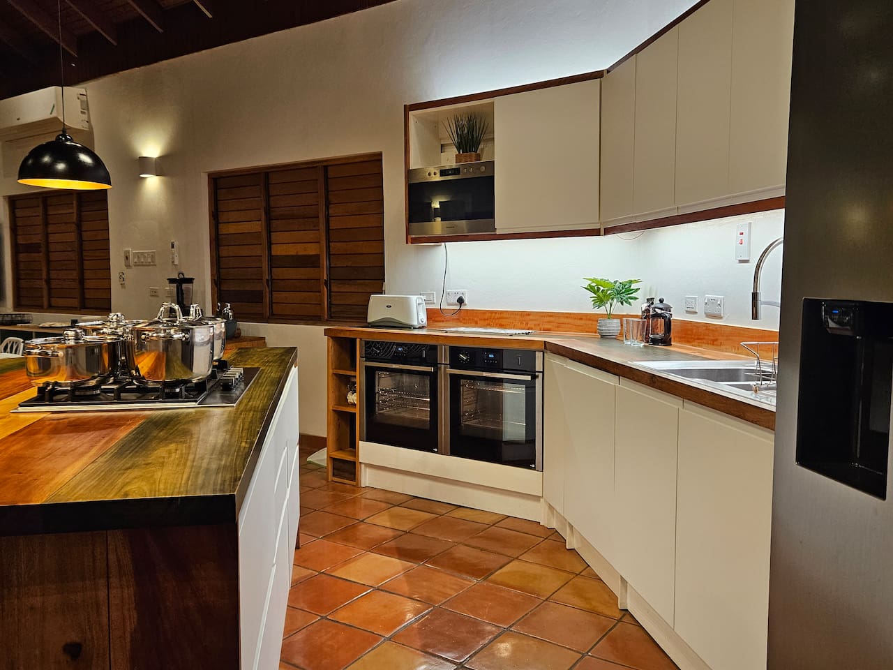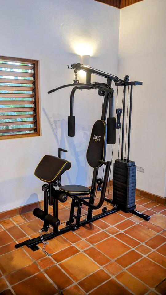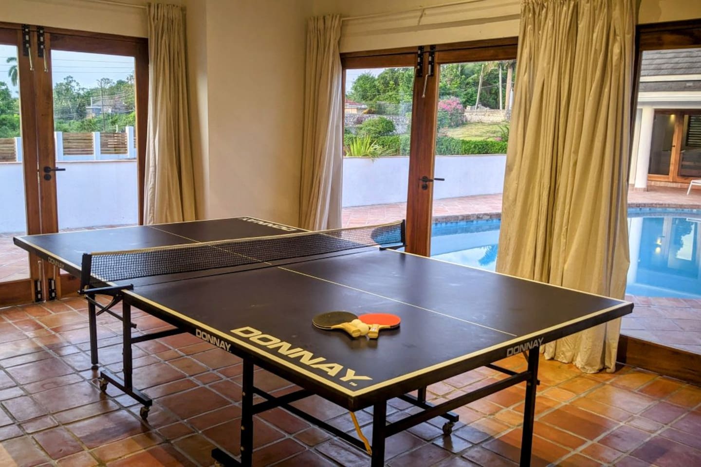 Luxury 5-Bedroom Villa in Montego Bay with Private Pool. Experience the ultimate Montego Bay villa rental in the prestigious, gated community of Coral Gardens, near Rose Hall. Our fully fenced estate features a private electric gate, offering total peace of mind. This architectural gem blends traditional Caribbean louvre windows for natural cooling with modern air conditioning in every room for personalized comfort. Spacious Single-Level Layout & Bedrooms This luxury vacation home features an intuitive one-level floor plan designed for effortless flow. The social wing boasts an expansive open-plan living, dining, and kitchen area that opens directly to the private pool deck. The Sleeping Wing: Features four serene en-suite bedrooms. Three offer direct pool access, while the fourth includes a secluded garden terrace. The Garden Suite: A fifth en-suite bedroom is privately situated on the pool deck near the fitness center. Private Gym & Rose Hall Beach Club Access. Stay active in our well-appointed gym—complete with a multi-gym, exercise bike, and free weights—overlooking the lush tropical gardens. Your booking also includes exclusive access to the Rose Hall Beach Club (just a 5-minute drive), featuring private beaches, a swimming pool with a bar, and tennis courts. Private Estate Experience Enjoy exclusive use of the entire villa. To provide seamless guest support, the owner resides in separate on-site accommodation. Our friendly resident dogs and cats live in the gardens, offering a touch of authentic Jamaican hospitality to your secluded island retreat.