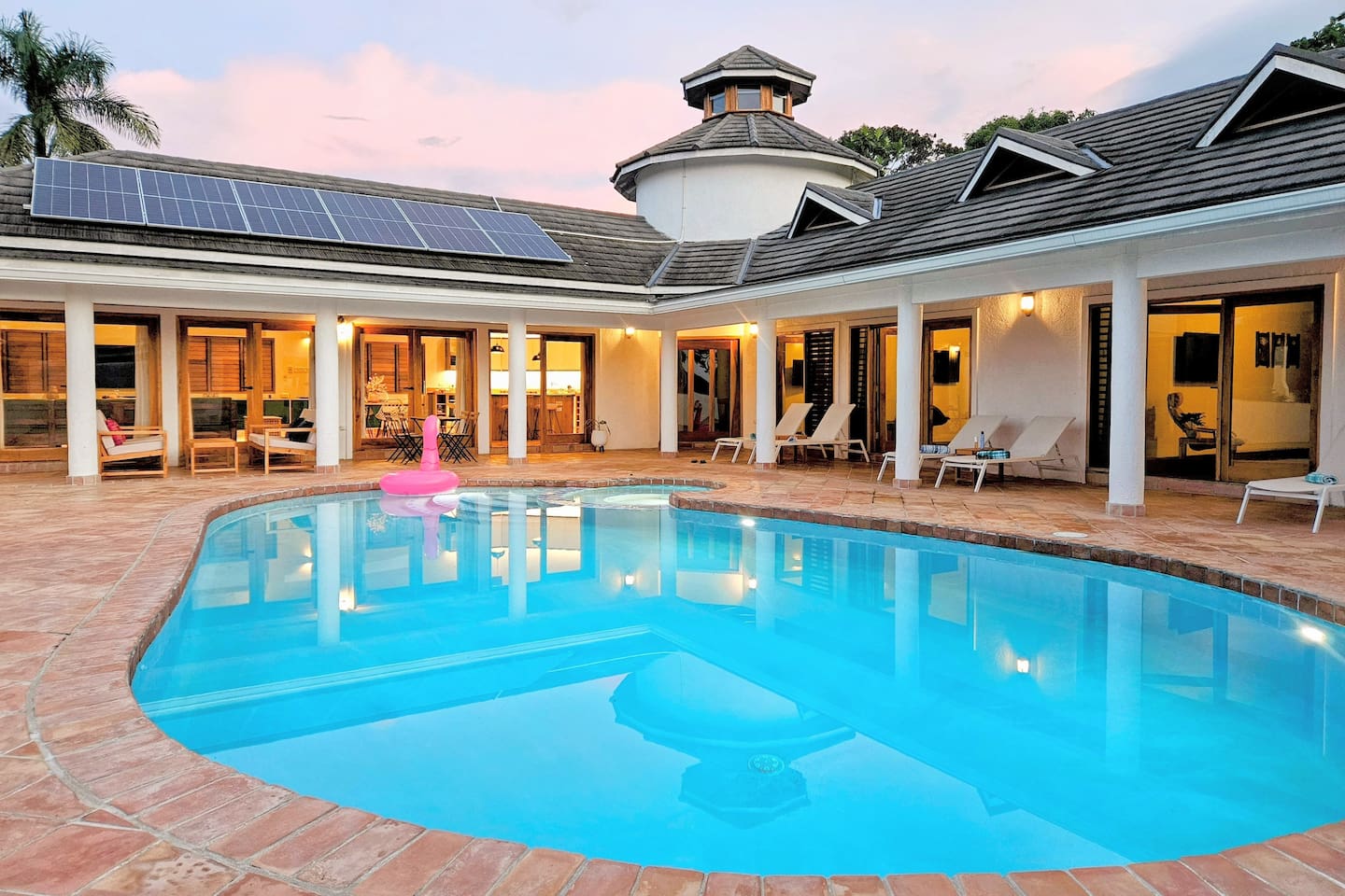 Flexible Group Accommodation & Private Guest Services. Custom Bedroom Configurations; Our Montego Bay luxury villa is designed to provide a perfectly sized experience for your group. We offer the estate as a four-bedroom sanctuary for up to eight guests. For larger groups requiring a 5-bedroom villa in Jamaica, the fifth poolside suite is automatically included via a per-guest supplement. Smaller groups wishing to enjoy the extra space and privacy of all five bedrooms are welcome to arrange this for an additional fee. Absolute Privacy & Discrete Hosting Your privacy is our highest priority. While the owners may reside in separate, self-contained accommodation on the property, there are no shared entrances or common spaces. You enjoy exclusive use of the villa and grounds. We provide a "discrete hosting" experience—remaining in the background to ensure your peace and quiet, yet always available at a moment’s notice for concierge support or assistance. Seamless Jamaica Travel & Private Chauffeur Services Eliminate the stress of island logistics with our private transportation services. Whether you require Montego Bay airport transfers, custom island excursions, or a dedicated chauffeur for the duration of your stay, we are happy to coordinate all travel arrangements. Simply message us to tailor your private transport and island tours.